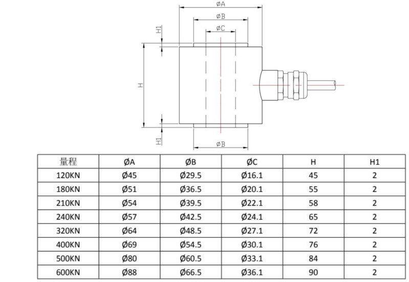 | 量程 | 120KN~600KN | 输出电阻 | 700±5Ω |